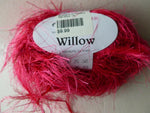 A new variation on the Eyelash theme. Willow has two lengths of Eyelash spun into each grouping so that short and long strands of lash hand down creating a willow like effect. This yarn is discontinued